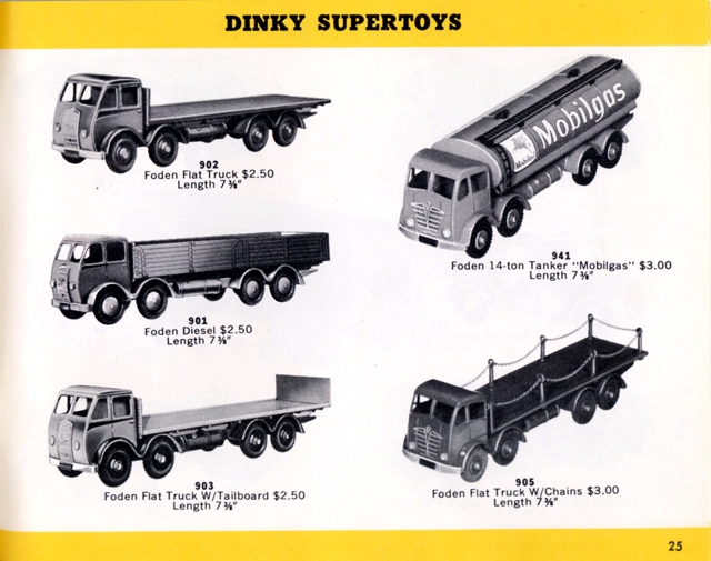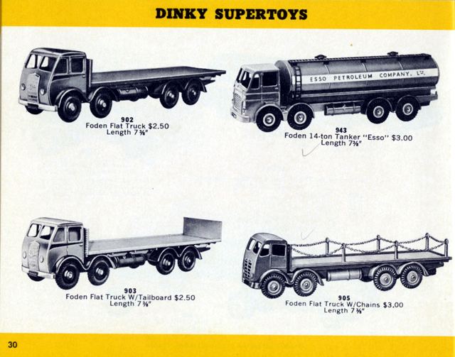This topic of the older Foden's still appearing in the U.S. catalogs in the mid-1950's is a most interesting one. As a young collector in 1958, my friend and I also noticed that the current catalogs showed this different Foden style cab. At that time, we were very inexperienced. Unfortunately, we never thought about writing H.Hudson Dobson, and asking them about this, but I can tell you that none of the older style Fodens ever appeared on the lists of Dinky's for sale, nor did we ever see them in any of the toy stores that had displays. We were totally puzzled about this!