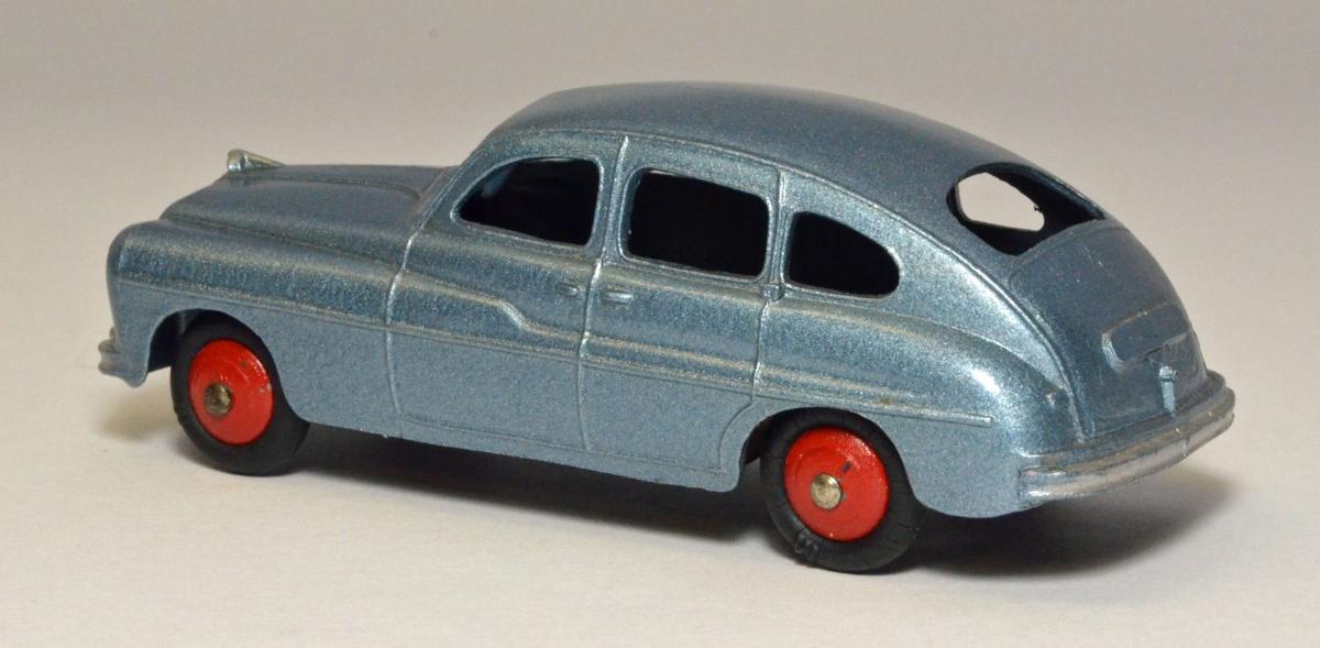 This has been a good couple of months for new Dinky's in my collection, and just this week, another one arrived:  The French Dinky 24Q Ford Vedette, in the wonderful color of metallic silver-blue.  I will do a thorough write-up on this nice model in its proper place, but will show a few of the photos I just finished taking.  This is my second 24Q, with my first one purchased new from H. Hudson Dobson around 1959, and still in nearly mint condition.  It has always been a favorite of mine, largely because of this new one's color in metallic silver-blue.  The French factory used several different colors and shades of metallic colors in the mid-1950's, and I think to good effect.