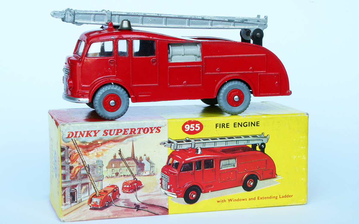 Of my 'parade' above the top second from the right certainly is no match, because the box (Dinky Toys - 955) is of early 1955, whereas the model shows characteristics of a significantly later date, ca. 1957, when the lighter grey for hose details came into use.