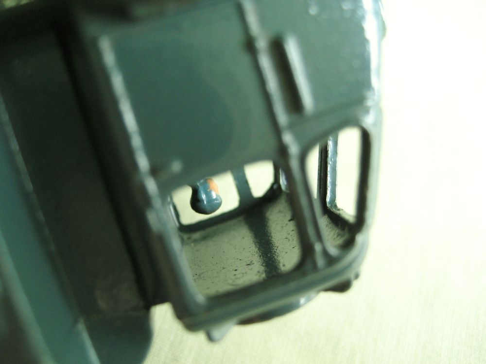 As an example of how I can be fooled, I bought a 642 Pressure Refuller from the USA that appeared to have no driver nor roundel on the front. As a result of following this post, I decided to have a good look at it and the 'French' roundel had been removed with the slightest showing of the red left. The driver is 'missing in action' with no signs of it being removed (as with another one I examined where there were scratches around the mounting point.). This version has the cross hatching under the roof.