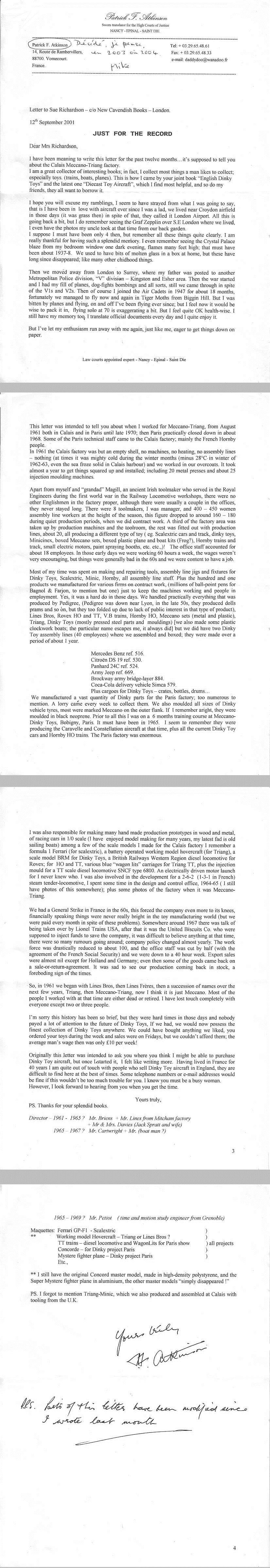 Considering that this document is part of the Meccano heritage, Jacques has sent the original to David Cooke so that it becomes part of the DTCA Dinky Toys archive and artifacts