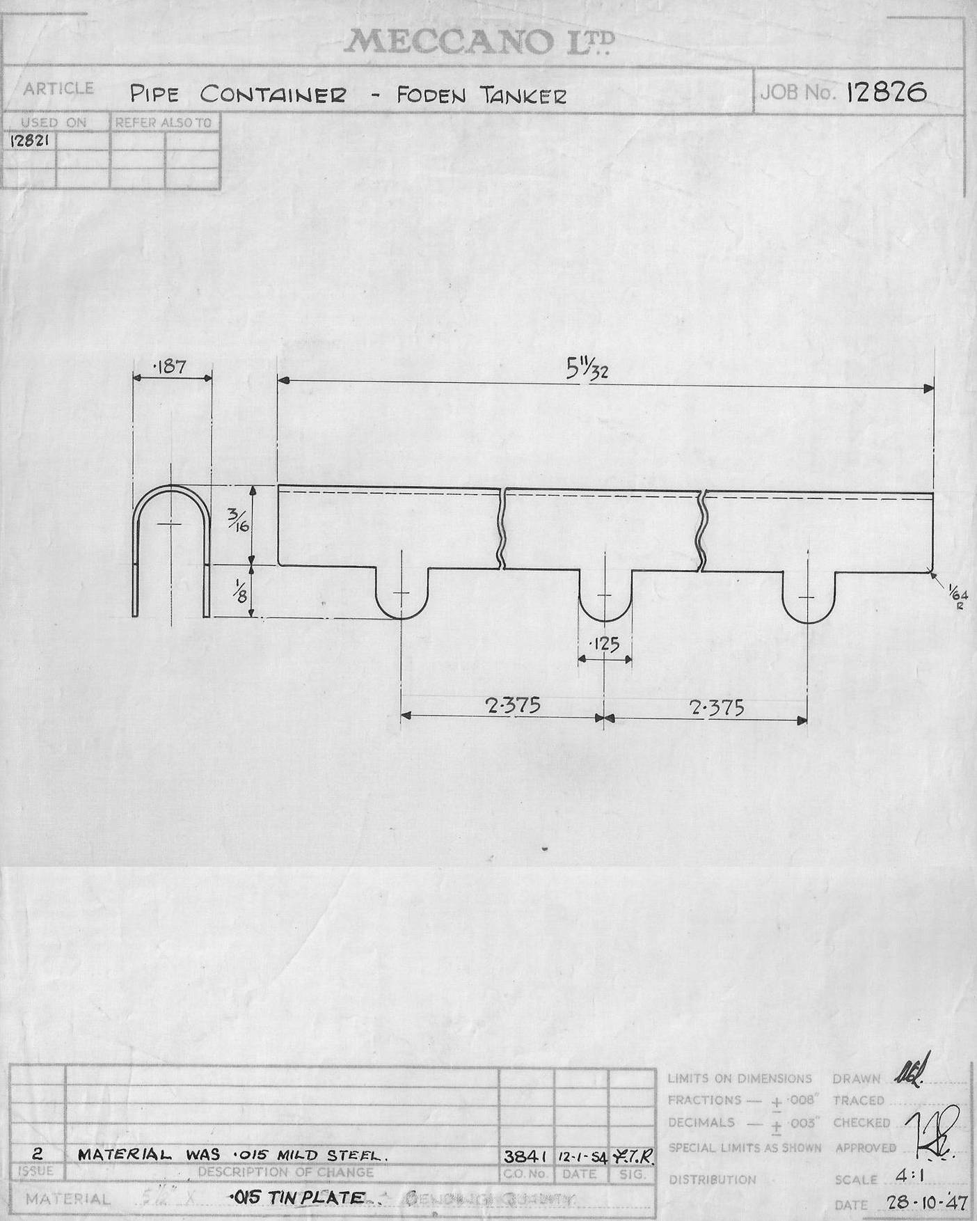 This is the factory drawing for the pipe container for the Foden 8-wheel Tankers and later Leyland Octopus Tanker. This was used in models 504, 941, 942 and 943.