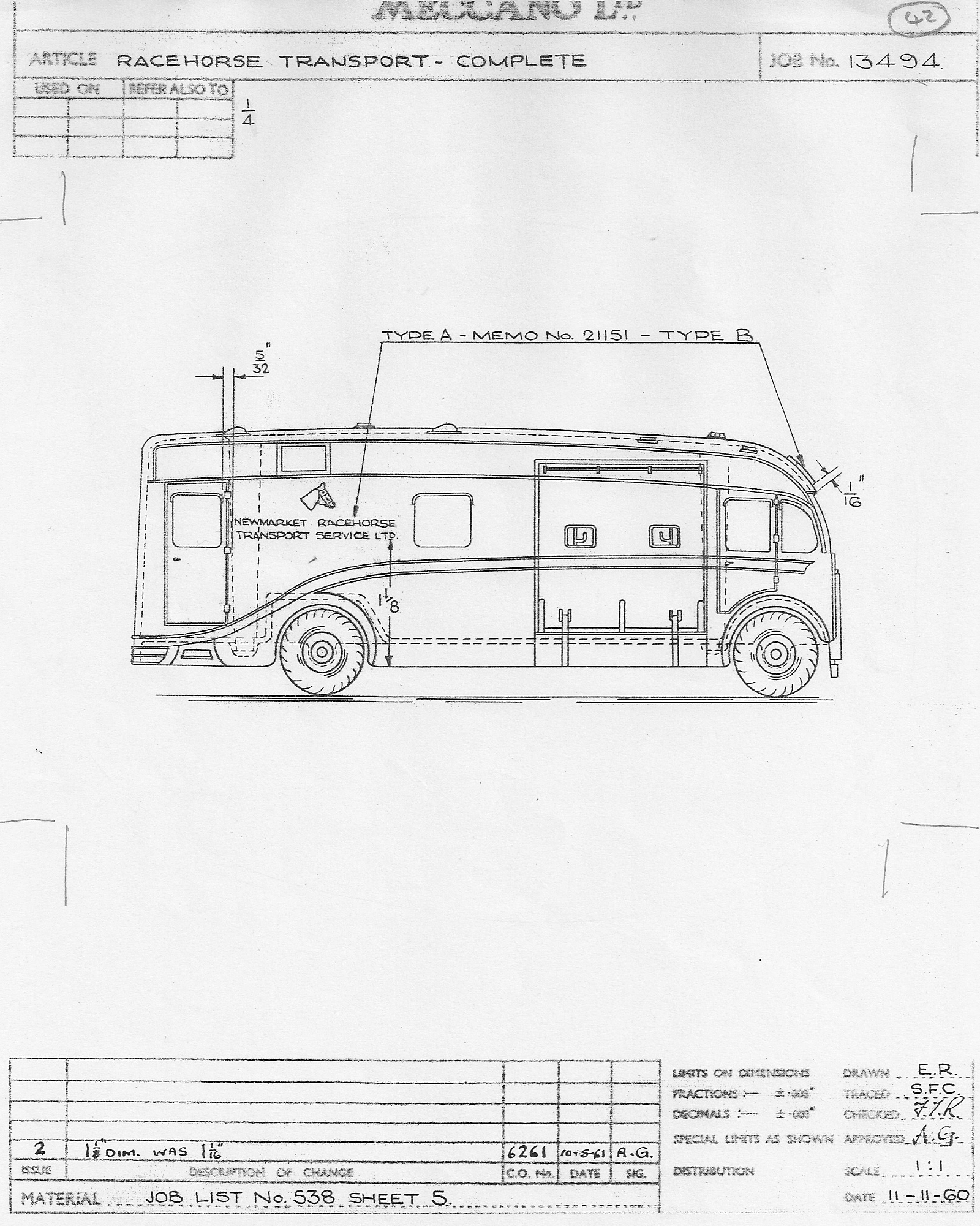 This is the factory assembly drawing for the 979 Racehorse Transport, produced from 1961 to 1964.