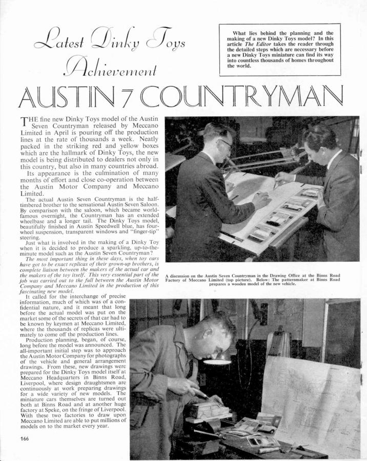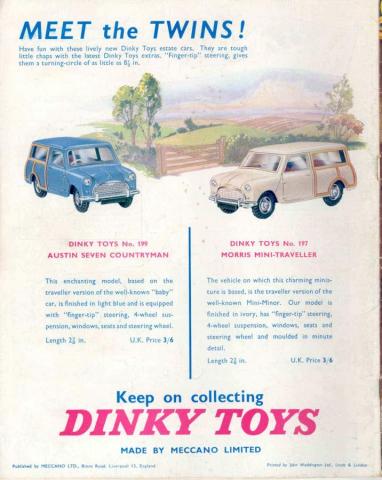 Simultaneously with the introduction of the 199 and 197, Meccano Liverpool describes the entire production process of the 199 Austin Seven Countryman and the real one in a very interesting article in 6 pages in Meccano Magazine of May 1961 which I also show here. A very nice promotional action from Meccano Liverpool. The Mini was made in many versions by Meccano Liverpool.