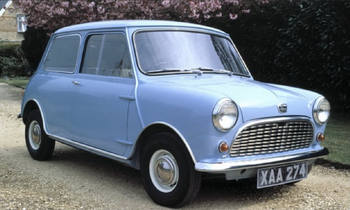 August 1959: Introduction of the Austin Seven, Morris Mini-Minor and Morris Mini-Minor DL 2-door saloons, all with transversely mounted 848 cc engine and 4-speed manual gearbox.