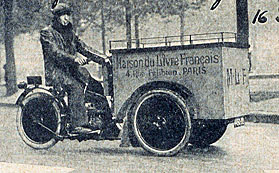I have never seen any photos posted before purporting to be the original prototype for the Triporteur, even in Jacques Encyclopedia. I am not sure whether that confirms a low interest level in this little antiquated model, or just not much info to be found. I spent the better part of a day recently, with a renewed effort to try and find something and I was finally rewarded with a couple of photos that clearly show a close relative to our French Dinky Triporteur. Most of these appear to have originated and been used primarily in France, so I was not able to actually read much history, or even who made them (I do not read or write French). They seem to have been created in the 1930's or earlier, primarily to make small deliveries in the city, and it would appear they were pretty well suited for that, until the advent of small delivery vans. Below are the two photos I was able to find: