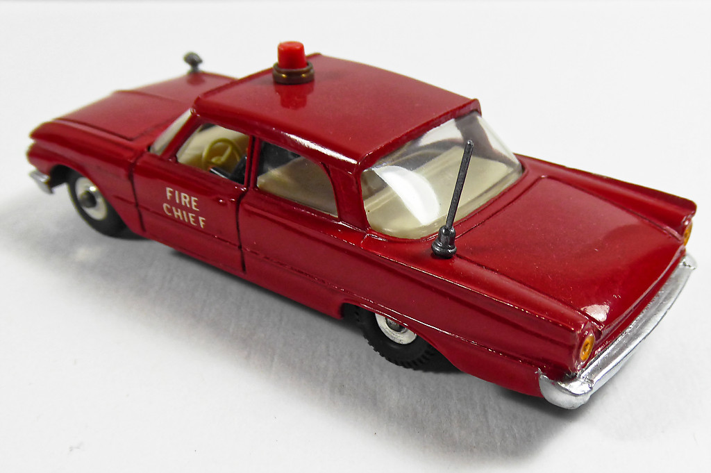 Thank you for this very nice Fairlane writeup. This Dinky appeared when I was six years old and always a favorite, though at the time I considered it less than realistic because all police cars I had seen had four doors. The vintage literature you have uncovered makes it clear that some departments did run two-doors. (I still think Dinky would have done better to make a four-door, which could also have been issued in taxi guise as an update to the Plymouth Plaza.)