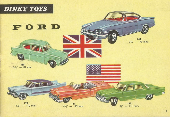 Dinky Toys 148 Ford Fairlane in catalogue UK 1962. Model 148 was always pictured in green.