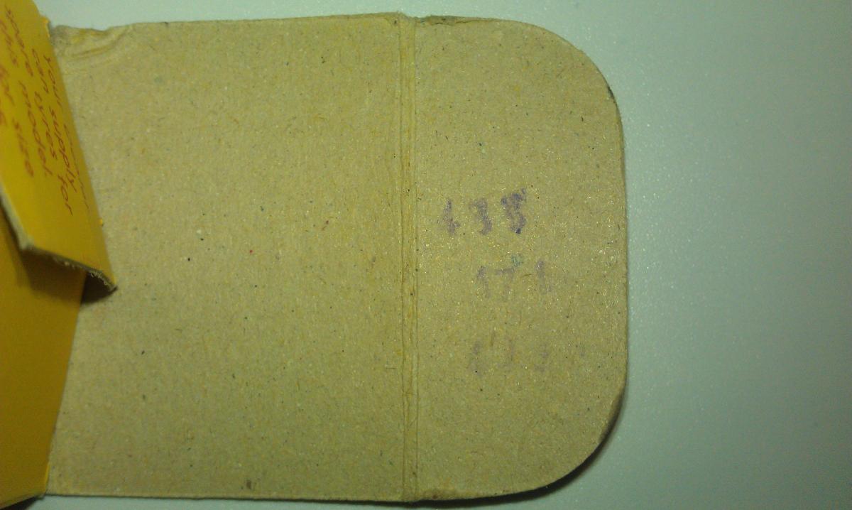 First, the date stamp. I do not have any ulra violet lamps, but did use my closeup lens, with high resolution, and then ran the photo through Photshop Elements, to try and help the image, which is extremely faint...previously, I hadn't even noticed it! To me, it is pretty clear that the first number in the third row is a "5", which I would guess should mean May....the number next to it kind of looks like a "9", but it is extremely faint, and I don't see a third number at all....................but, I am not sure that the "5" is really the first number....the stamp on my end flap, was done right across the seam of the fold, so it is possible that we are really seeing the 2nd and 3rd numbers.....