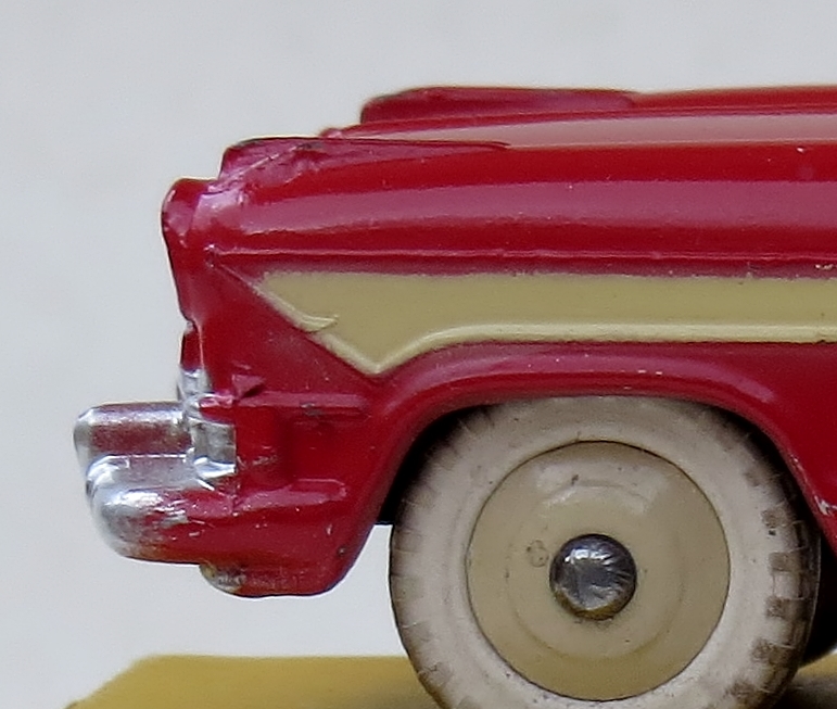 Bruce-Here is a picture of my 174 Hudson Hornet with left side to front fender. I don't see any imperfection. I think my Hornet is one of the first issues and has also the first type box. Mine has a so called mottled base. Do all your examples also have a mottled base or are there differences? I have only one example.