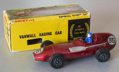 This Nicky Toys 239 Vanwall racing car is made in a very unrepresentative deep metallic red, in the real world Vanwalls were predominantly, if not always, green.