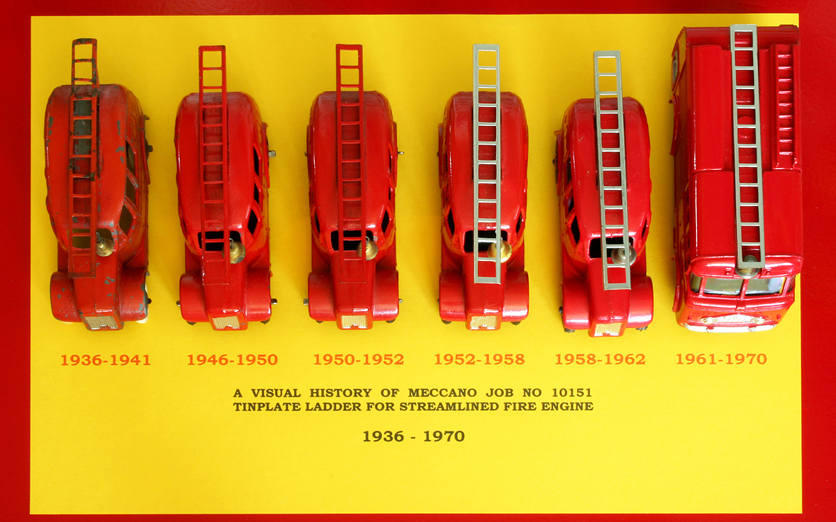 Returning to the (very early) experimental initial post here, I realized that there was a third application envisaged for this ladder of the Streamlined Fire Engine. It was (or better: was to be) used for a planned model of a Bedford WLG of the early 1950s too! This mock-up was part of the Chris Wade collection, discovered in 2004, auctioned at Bonhams, and won by Jean Marie Gianni from Paris. (The Journal January 2015 p. 18 and April 2015 p. 23). Now in the L'Auto Jaune collection: https://autojauneblog.fr/2020/01/26/lodyssee-des-scarlet-arrow/