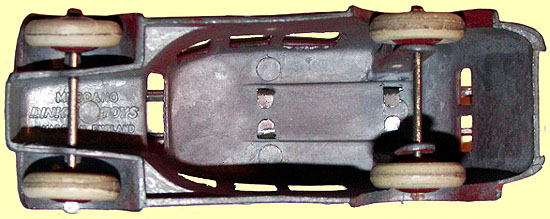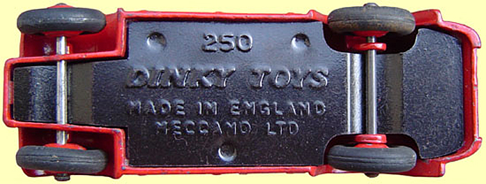 The 25h / 25 K / 250 is peculiar with a construction which I think is unique to Dinky Toys. On most Dinky Toys, the base plate maintains the wheel axles or the axles are inserted into holes of the Baseplate. On the fire engine it is the axles which maintain both types of baseplate.