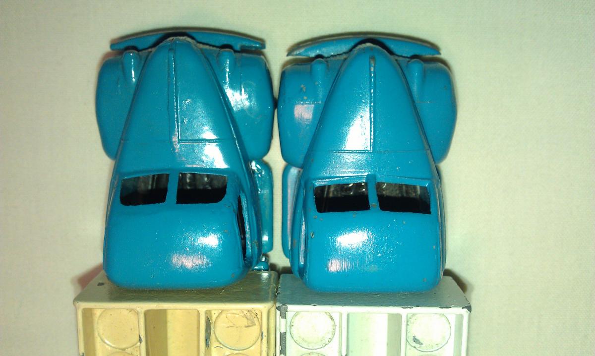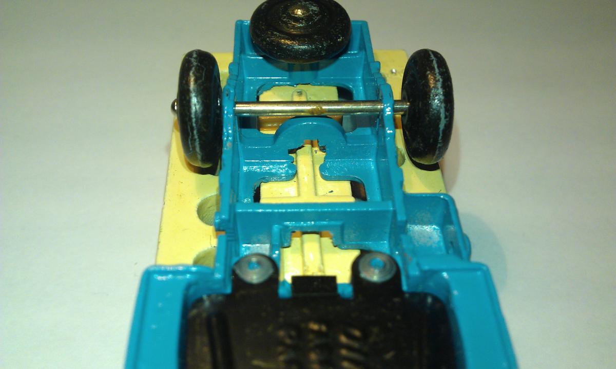 Hi Terry---I think the early ones had a lighter shade blue. I saw another one 1st type chassis on internet of which I show pictures of the left side and the base. On the pictures of the base you see that the spare tire is broken off. That might be the reason that they strenghtened that area round the spare tire with a cross beam. To see the difference in the shade of blue you must have them in the hand. It is more easy to see the colour differences of the loading platform between creme and white.