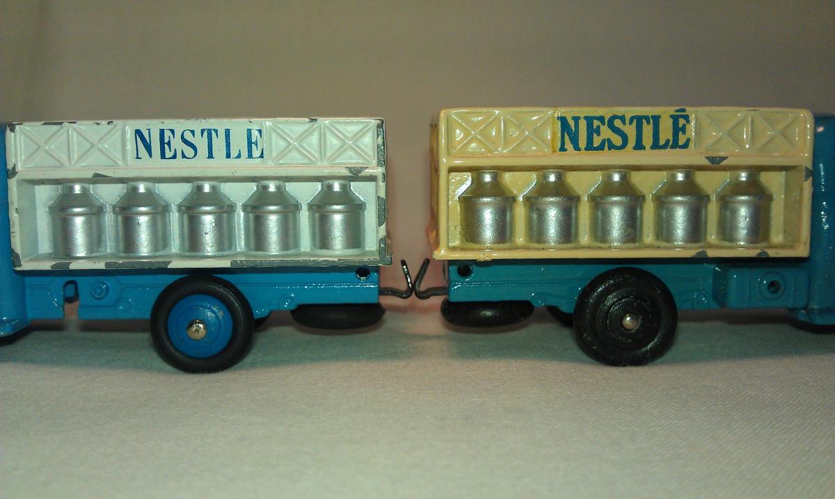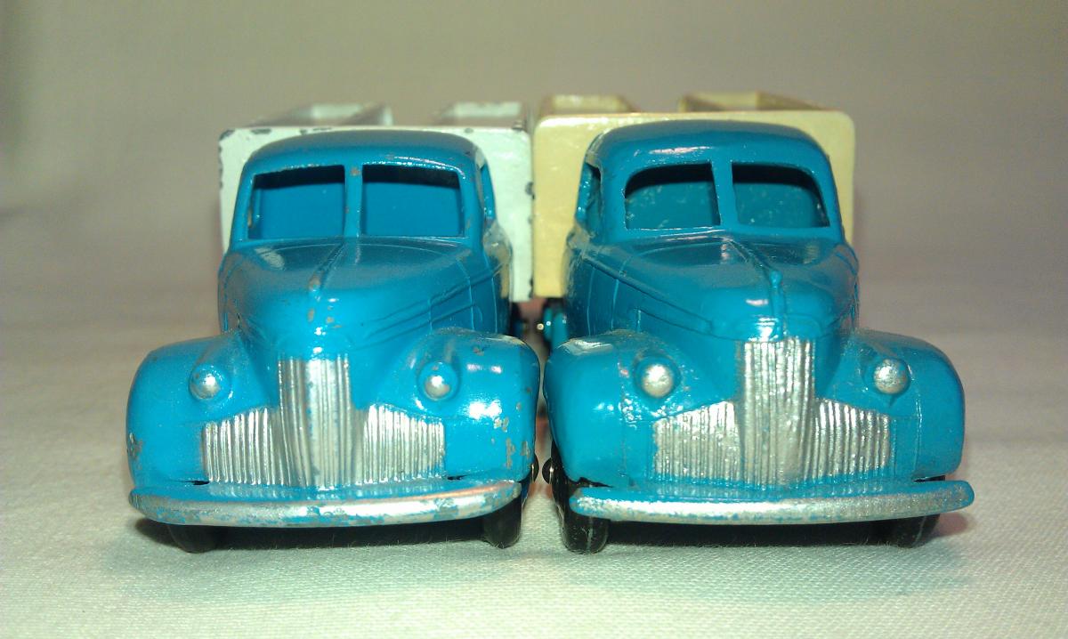 Comparison of type 1 and type 2 of the French Dinky Toys 25o Camion Latier (Studebaker Milk Truck).