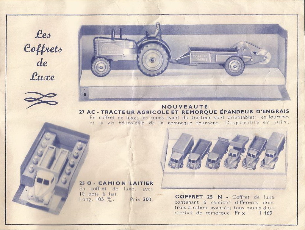 1950 French Dinky Toys catalogue with coffret de luxe 25o Camion Laitier