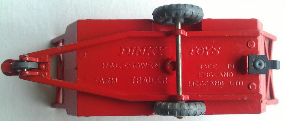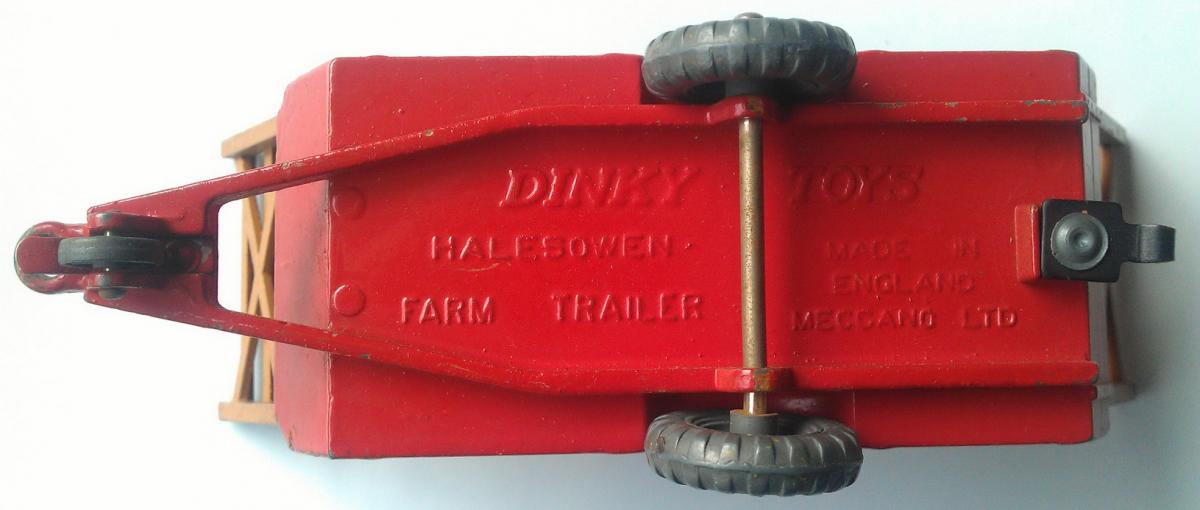 What strikes me is the name Halesowen Farm Trailer on the base that I cannot link to this Farm Trailer anywhere. Apart from the introduction in Meccano Magazine July 1949 as Harvest Trailer I could not find any information or photo of a real Halesowen Farm Trailer. The only thing I could find is that Halesowen is a town in the Metropolitan Borough of Dudley, in the West Midlands, England. The Brighton Toy Museum gives the following explanation about the name: The Dinky toy was named after the West Midlands town of Halesowen, possibly just to make it sound less generic.