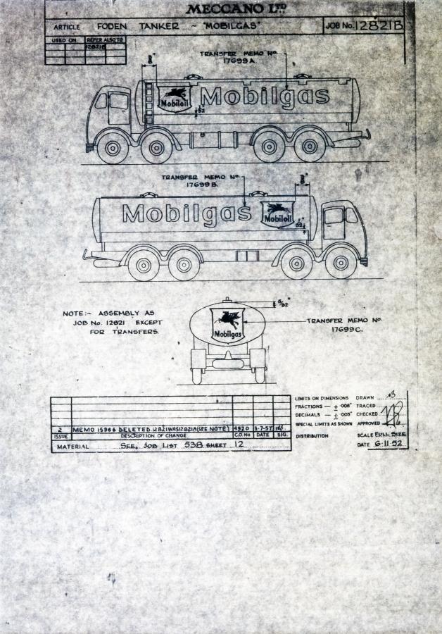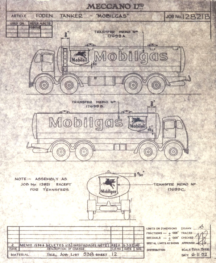 Meccano drawing 504 Foden Tanker Mobilgas with transfers, by courtesy of David Busfield.