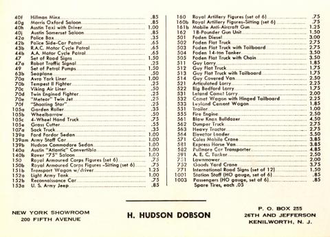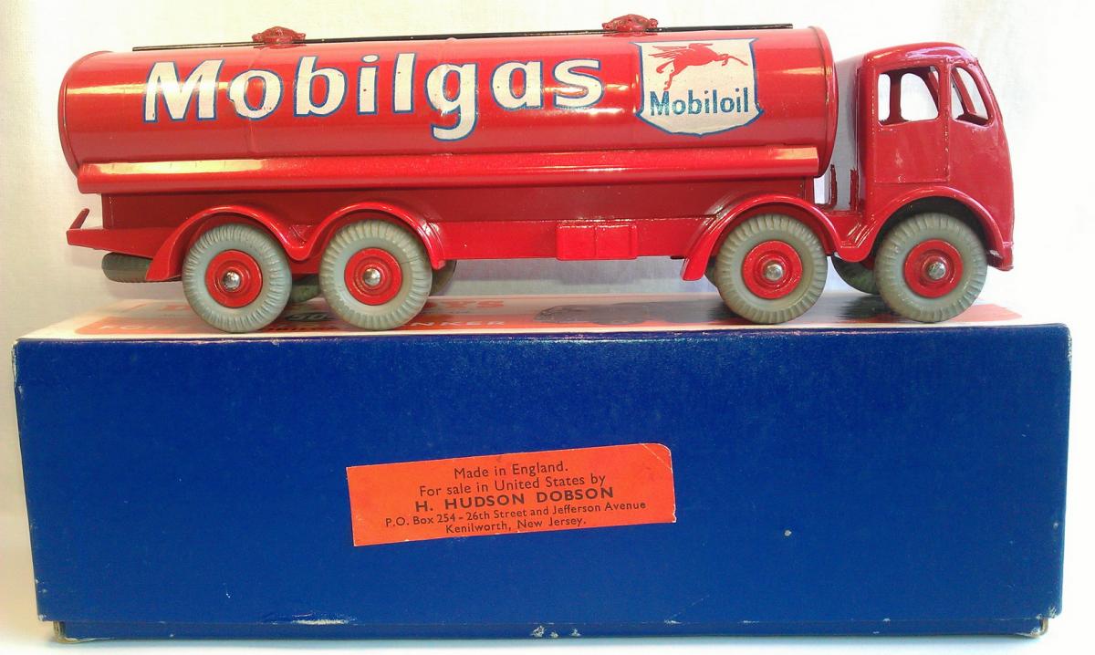 A great new addition, the capital Foden Tanker 'Mobilgas'. I am excited! Apparently it is the first time for over sixty years that it left its box. A very much appreciated acquisition, completing my 1950s Foden Tankers! It has a Hudson Dobson label and with a sticker from the famous toy shop of F.A.O. Schwarz, New York. I have manufactured a support for display already. Now for compiling a new catalogue entry and registration. Kind regards, Jan