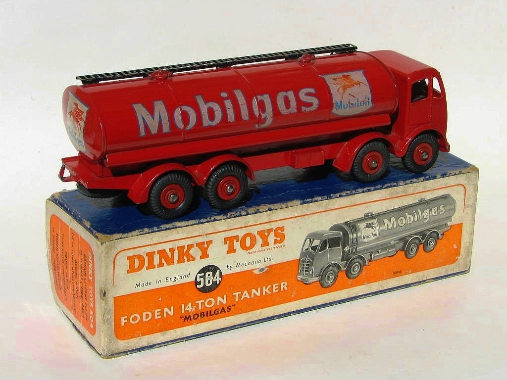 Jan--Congratulations are surely in order for such a wonderful acquisition!  Finding a very nice or nearly mint example can be done, but to get one likely never out of its box is something else, and a sure treasure.  To me, at least, the Foden Mobilgas tanker is one of rhe most iconic Dinky's ever made, and so recognizable, with its bright red color and magnificent Mobilgas livery.  Meccano did a masterful job with this model, and I was very happy to acquire my own nice example many years ago.  Yours is also a very early example, in the original style box, with red tank tops, and the grey radial tread tires.  Mine is dated January, 1955, and has the later black tank tops, black block style tires, and the later striped box with the 941 numbering.  You must be very happy at finding this treasure, and I look forward to seeing more of your photographs of it when you get the chance.