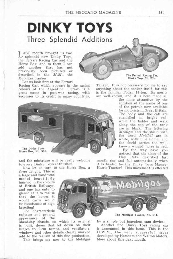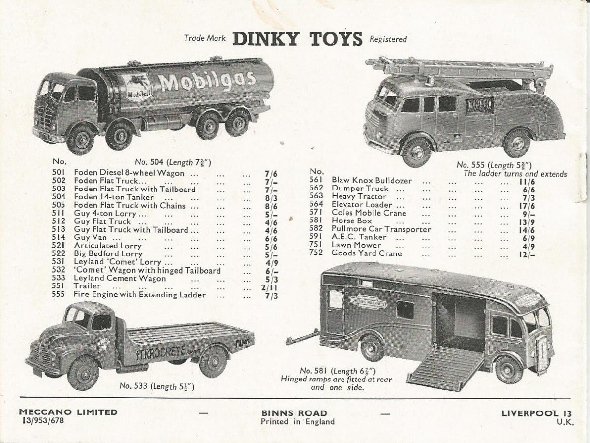 It also appeared on the back page of the Meccano catalogue UK of September 1953.