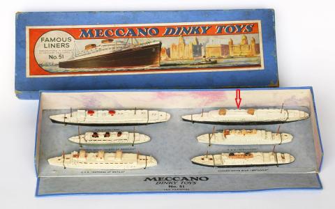 The earliest ship that Meccano chose to model was the German Europa, which was completed in 1930 for the reviving Norddeutscher Lloyd. It was pictured in the early catalogue of 1934 for the first time, no. 51b, as part of the Famous Liners series.