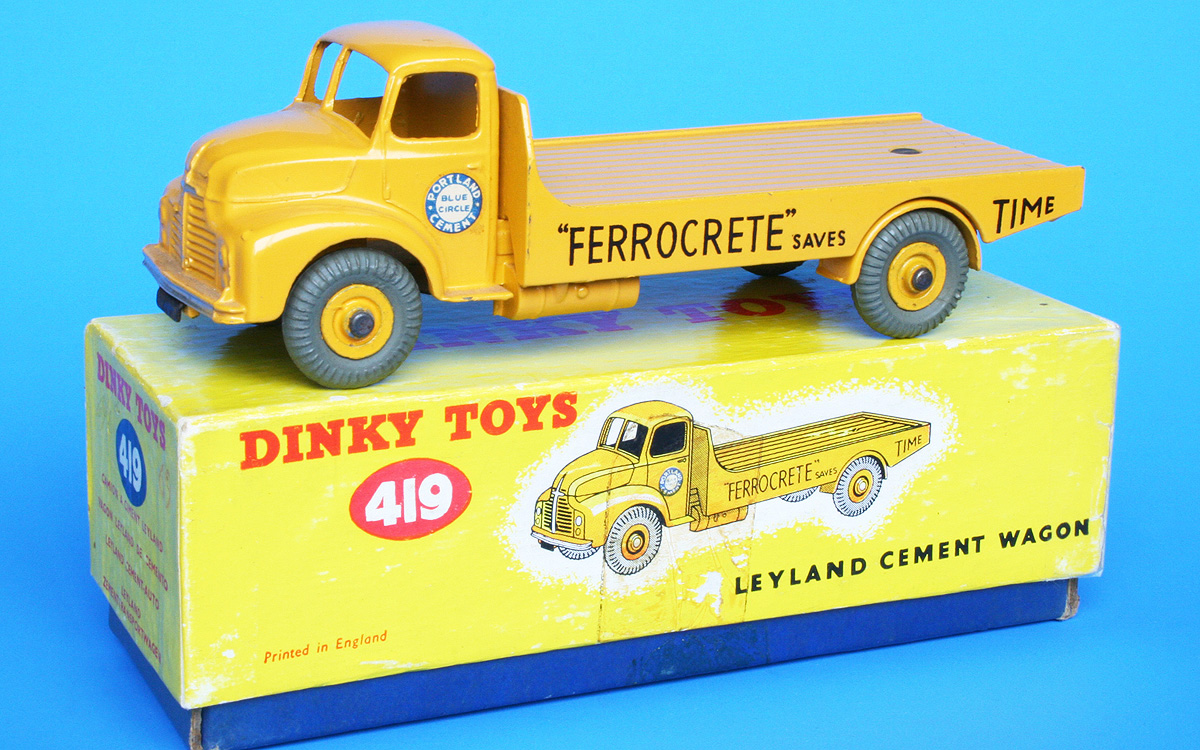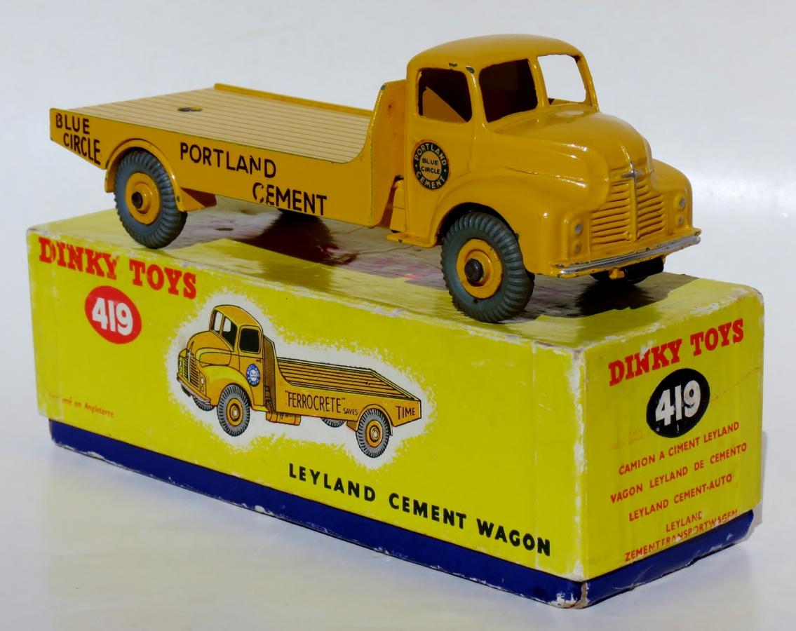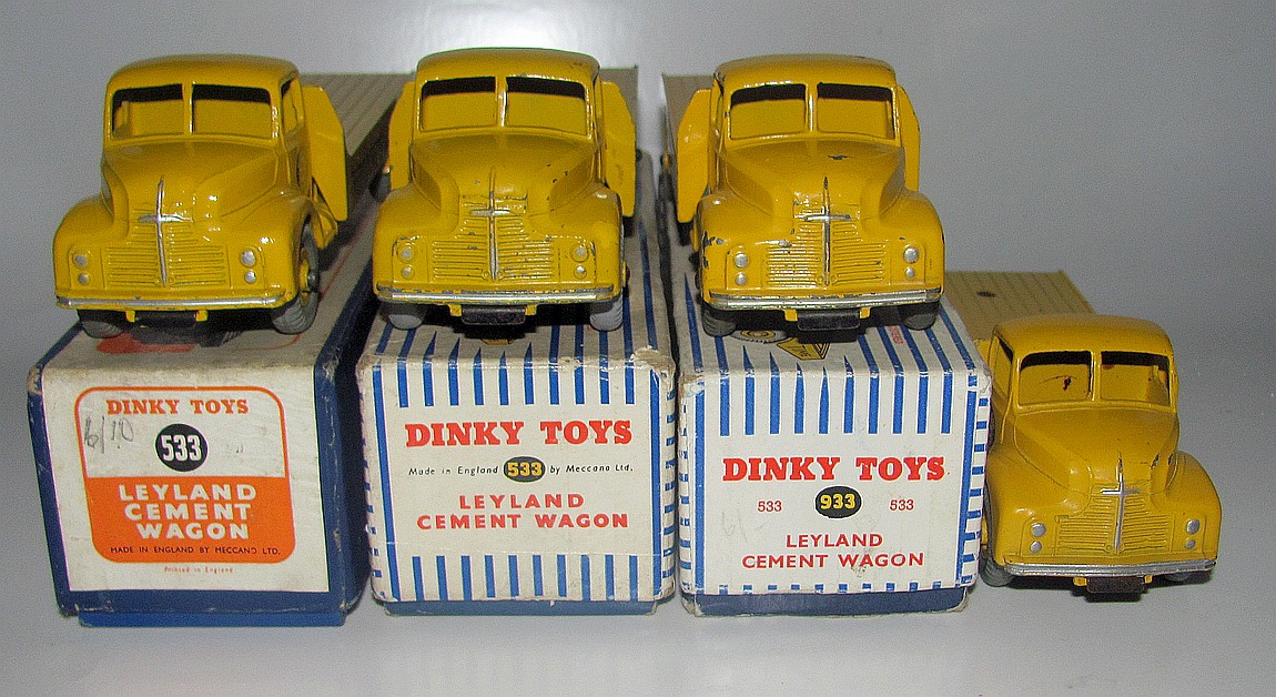 Now I have a fleet of 533/933/419 Leyland Comet Cement Wagons.  I had not noticed the dual numbering on the 933 before I took the photo. The unboxed one is a 419 but I do not have a box for it.  Did in come in s striped box before the yellow one?