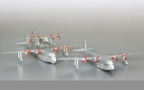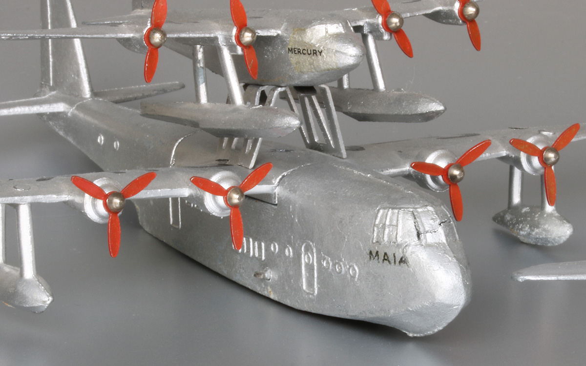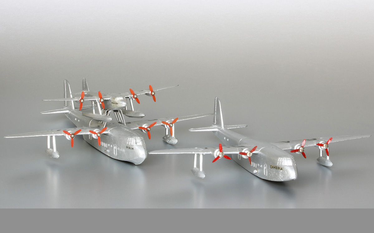 The pre-war no. 60r Empire Flying Boat came in numerous name and registration number liveries, until 1940 with gliding hole on top and with plastic or, later, wooden rollers. Post-war only three version returned: Caledonia G-ADHM, Cambria G-ADUV and an unnamed G-ADVB.