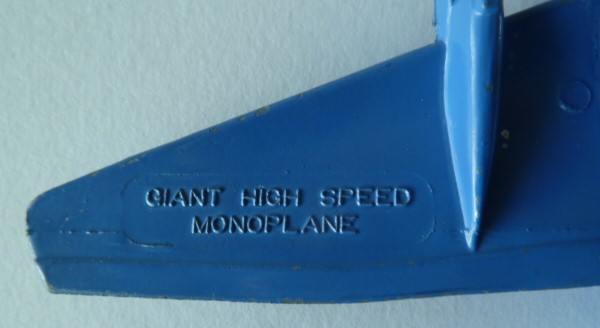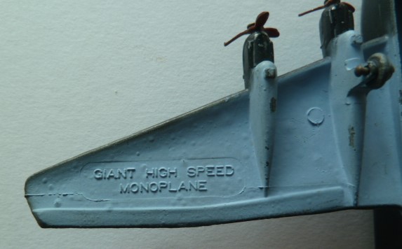 Meccano produced the same casting for the Ju 90, Ju 89 and the colored High Speed Monoplane. The names were on inserts in the die and could changed. So with one die more model names were possible on castings. Of course this could go wrong and factory errors can thus be found. One of my Ju 89 is such a error. See picture.