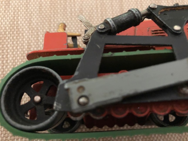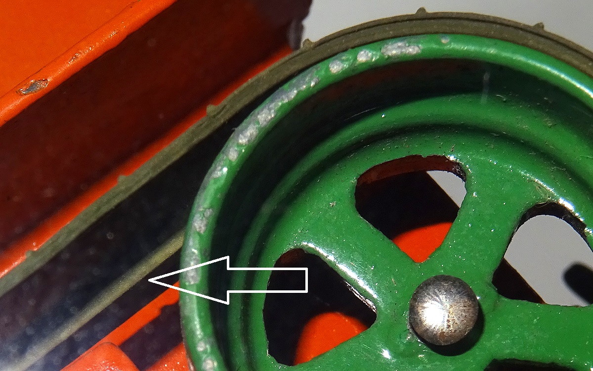 It was merely three months ago that a fellow Dinky enthusiast asked me the same question. Knowing that the answer was to be found on the talkmodeltoys forum (which I checked), I referred to that website. Unfortunately he did not visit the site immediately, to discover a few weeks later that the site had disappeared, which is a big shame. Visiting the thread in question I remember that it must be possible to cleverly loosening only one of the connecting pins to be able to get the spare tracks in place. But which one?