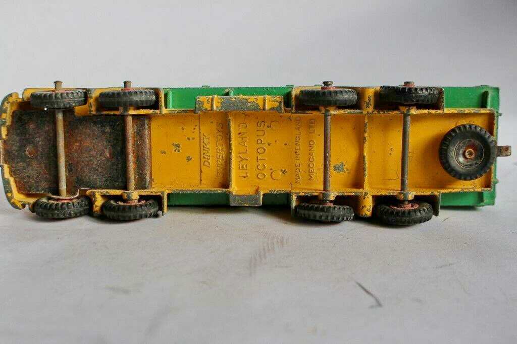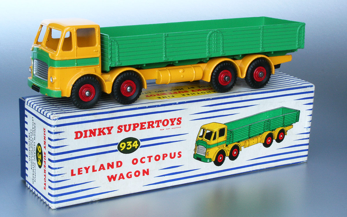 I have several of the "common" type of yellow/green Octopus, but none of them have a number cast under the rear of the body (just above the towing hook), yet I have a red/fawn 901 Foden which has 934 cast in this position. I know the Foden to be original, but don't recall ever seeing this number on a Leyland. Does anyone have an example?