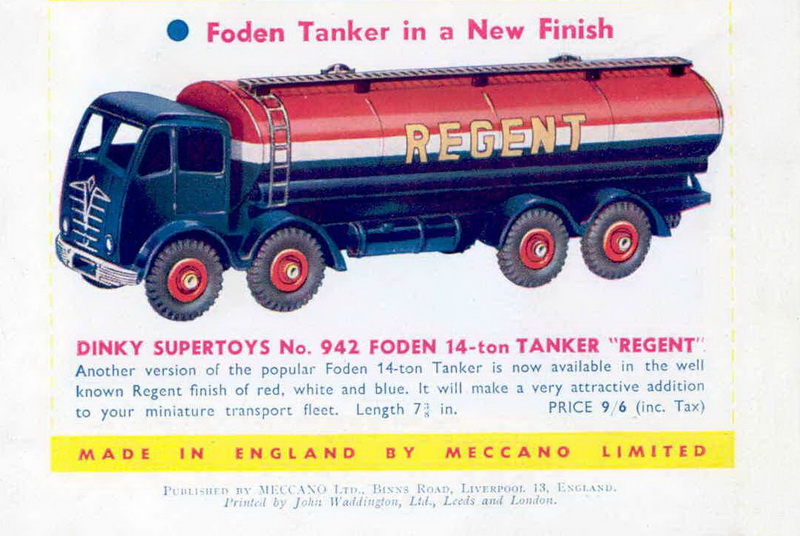 942 Foden tanker Regent in UK catalogue 1956 with the correct black filler caps.