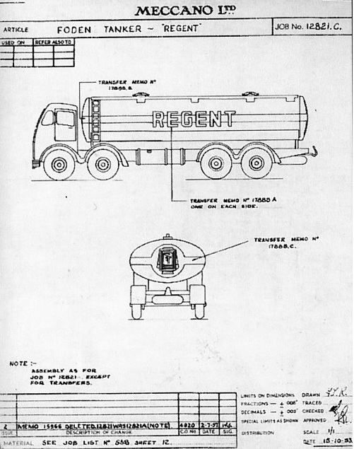 Meccano drawing transfers for Foden tanker Regent. (DTCA documents library)