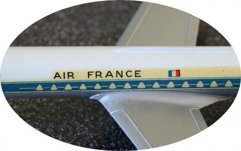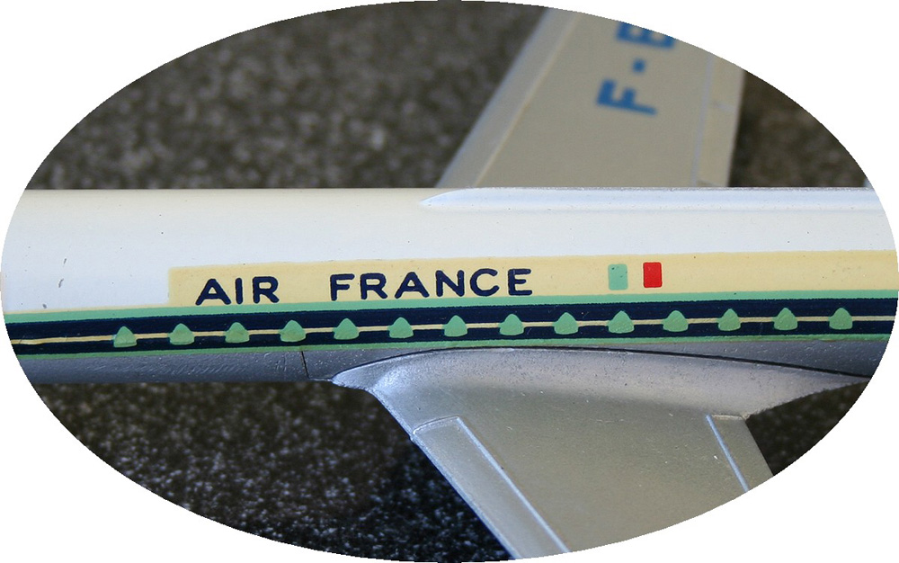 ‘AIR FRANCE’ is printed in bolder capitals and the tricolore is without frame and in lighter shades of red and blue (in fact turquoise).