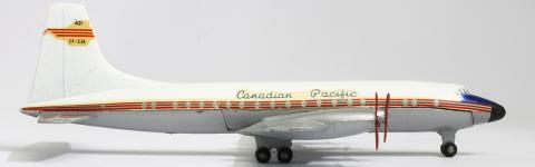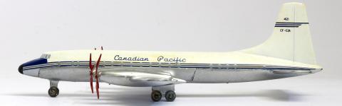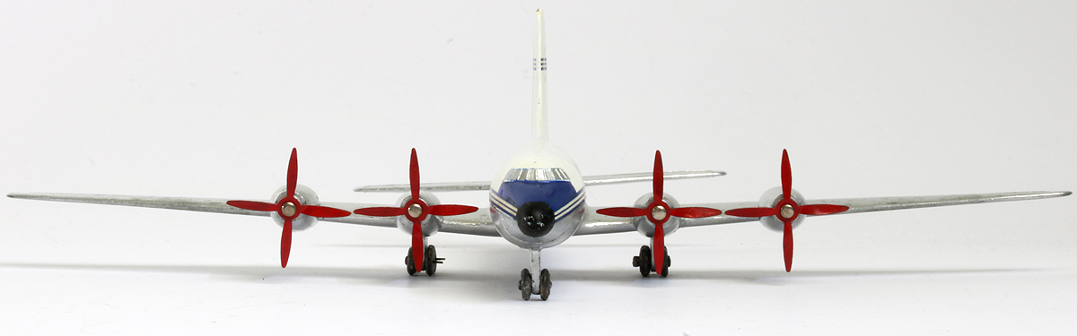 Some comparative pictures of the earlier and the later versions of the Bristol Britannia Airliner, showing the differences in colour (silver to grey metallic), lining (blue to red), transfers (spirit based to water slide), propeller size (large ‘Shetland size’ to smaller ‘Viking size’), roof (smooth to seam in the middle), wheels (larger to smaller), wing registration number stamp (exact to less accurate, but that may be incidental).