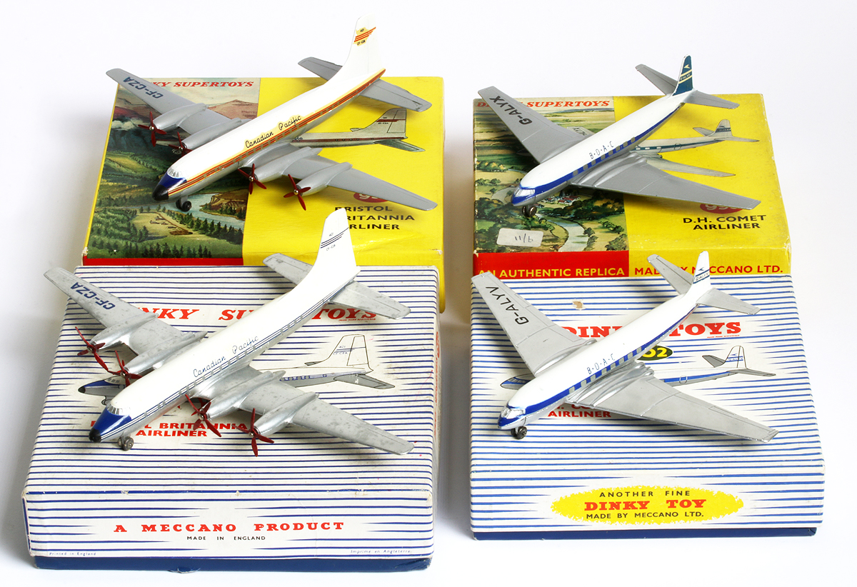 The boxes (blue striped to yellow picture box) and other finish details are similar to the contemporary Comet models. At the end my favourite photo of the Bristol Britannia about to land.