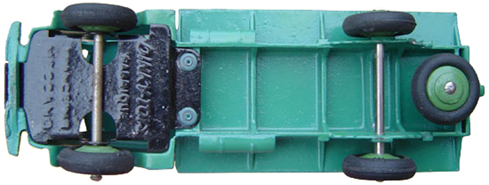 August 1948 sees the issue of the first Dinky on which axles domed at both ends have been fitted directly onto the casting. This was on the large trailer on which there was ample room for a pair of pliers to hold the axles.
