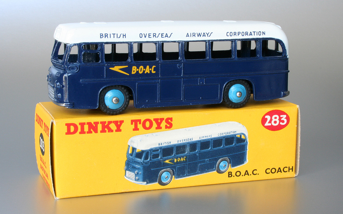 Two other randomly chosen 'ordinary' Dinky Toys boxes added, of the no. 283 BOAC Coach (I cannot find any deficiency) and a near perfect one of the no. 172 Studebaker Land Cruiser. Kind regards, Jan