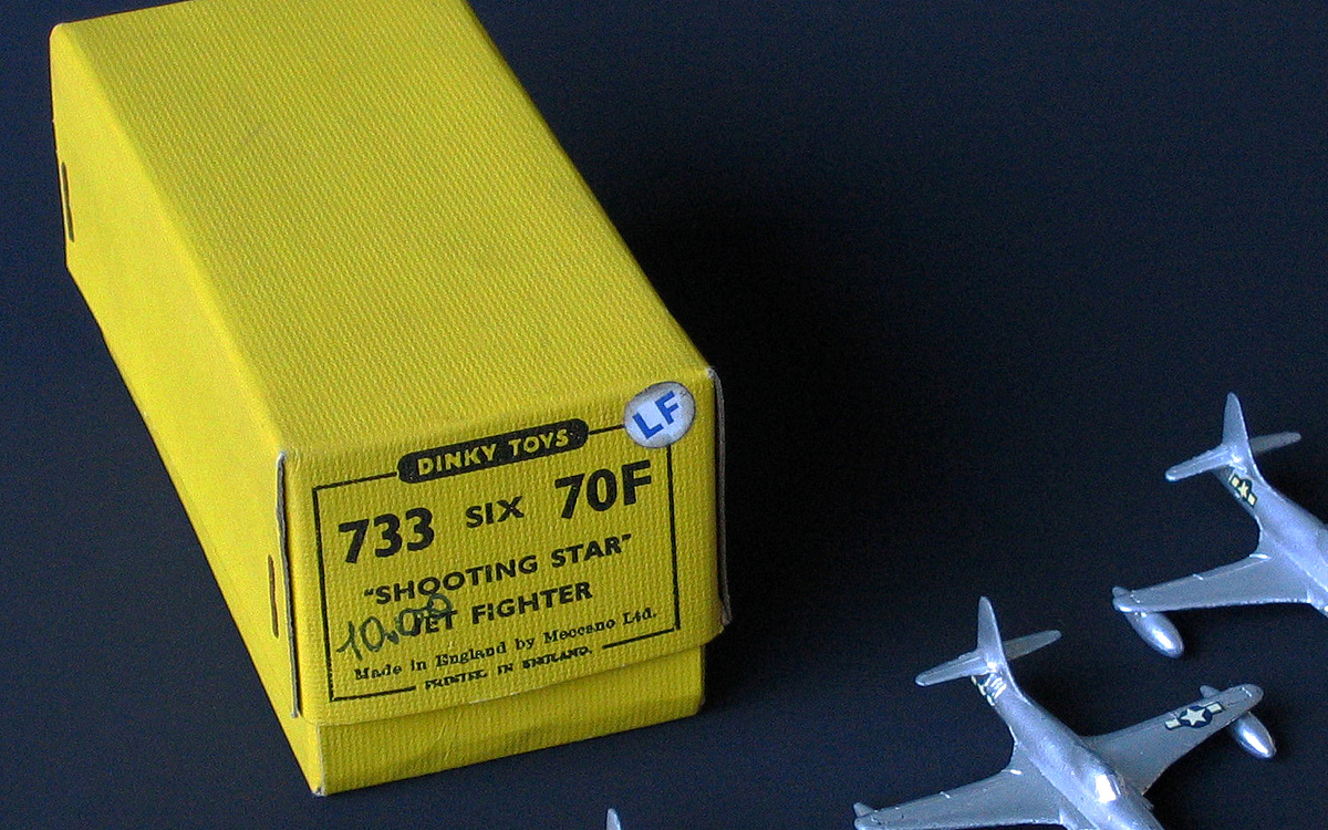 I hope trade boxes are also meant to be demonstrated here, lidded as they are. Especially those have a storage function, in warehouses, shops, getting soiled, quick notes written on them about contents and price, model after model being taken out and sold, sometimes waiting for a long time for every model to be sold out. So they will mostly have had a lot to suffer from that or they were - far more often than the attractive, illustrated individual boxes - just thrown away. Chance of survival was best when they were just forgotten, or if they came into the hands of serious collectors in an early stage. I do not have many trade boxes, about ten, I just do not collect them, but in the very scarce case that a cheap and fine example with original contents (an 'impossible' combination of course) comes along I may surrender. Two nice examples below, for the B.E.V. Electric Truck, both the early natural card trade box 14A and the individual yellow illustrated 400 box, and a later all yellow small one for the 70F/733 Shooting Star Jet Fighter (the other side shows the LF roundel, sorry no photo). Kind regards, Jan