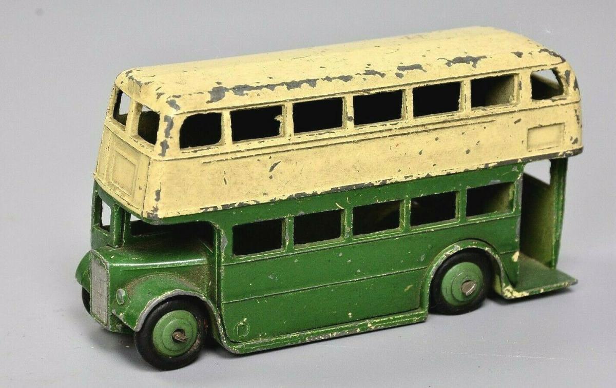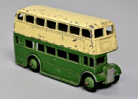 Photo 3: Here the 2nd color of the 29c Double Decker Bus must be applied. Looks like the bus is held in a open container clamped with a kind of pliers handle. The container covers the part of the bus that is not allowed to receive a 2nd color. Looks like the bus goes upside down in the container and the bottom part gets a 2nd color. For clarity I am adding photos of the Double Deck bus.