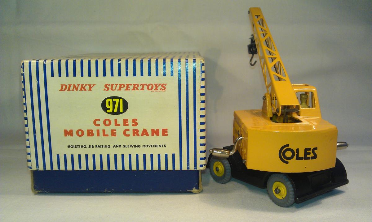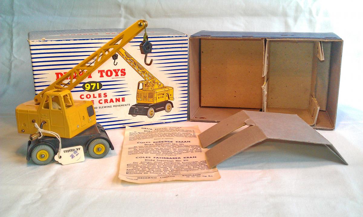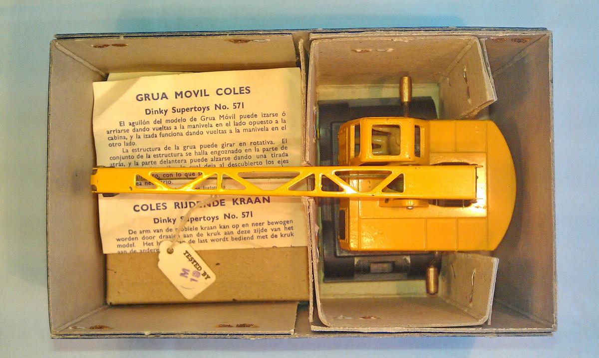 I bought this dual numbered 971/571 Coles Mobile Crane. I noticed that the model has a Dinky Toys box 971/571, while it has a Dinky Supertoys base.