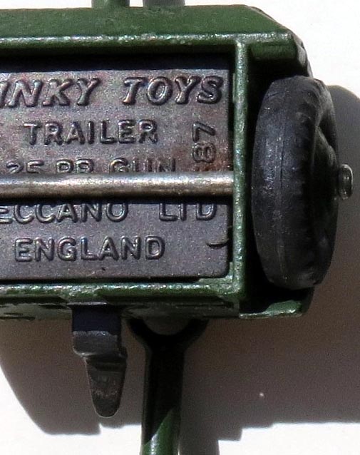 Also it would be nice to see how common or less common your trailer is having the axle on the interior rather than exterior. I examined the trailer that came with my 697 25-Pounder Field Gun Set and it has the axle on the exterior of the base plate. I received the set for my birthday in December 1957. (I was hoping it would have been the same as yours! :laugh: )