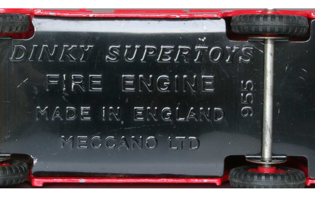 Dinky Toys 555 Fire Engine with silver extending ladder – 2nd version - baseplate with number 555.