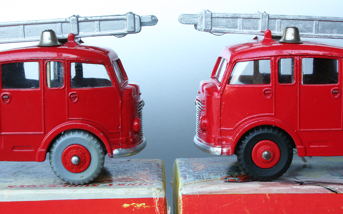 Seemingly the same Fire Engine models and boxes, but both do differ from each other, see pictures below.
