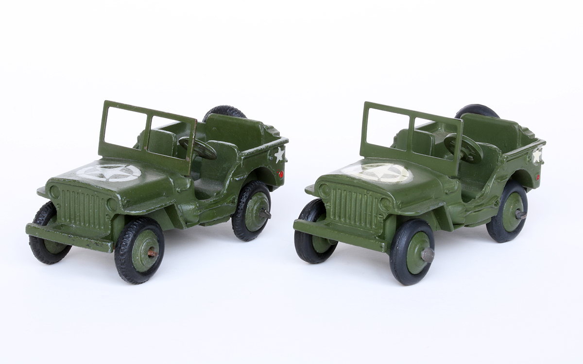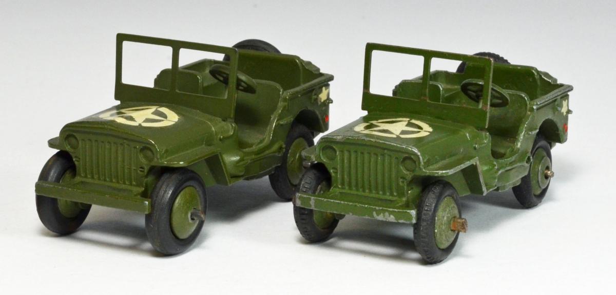 My example is a type 3 of 1947/48, also with the nice finely treaded tyres. The red Civilian Jeep 25j, also type 3 of 1947/48, is less common than the Jeep, but  the French version, no. 80B of 1957 on the left (and its later variants) is also common.