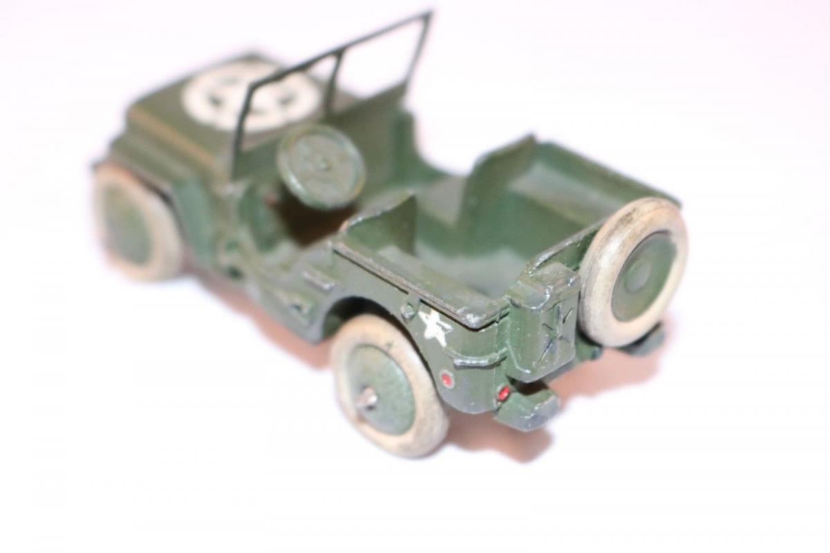 The export version of the 153a Jeep got sales number 672 and got the name U.S. Army Jeep. It was the final issue 1952-55. Because this model is for export only and the last issue, it is rare, but I succeeded to buy it with rounded axle ends (later one).