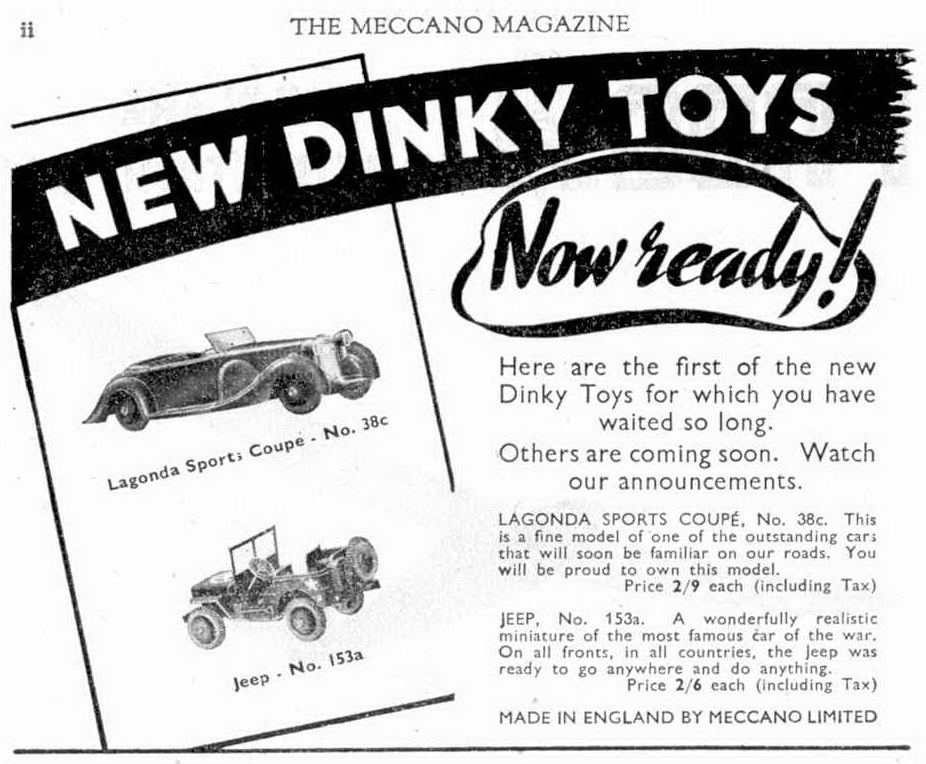 Upon further investigation, the DT 153a Jeep also appeared in the Meccano catalogue of Argentina of February 1948 which I received as a gift from Jose Heraud.