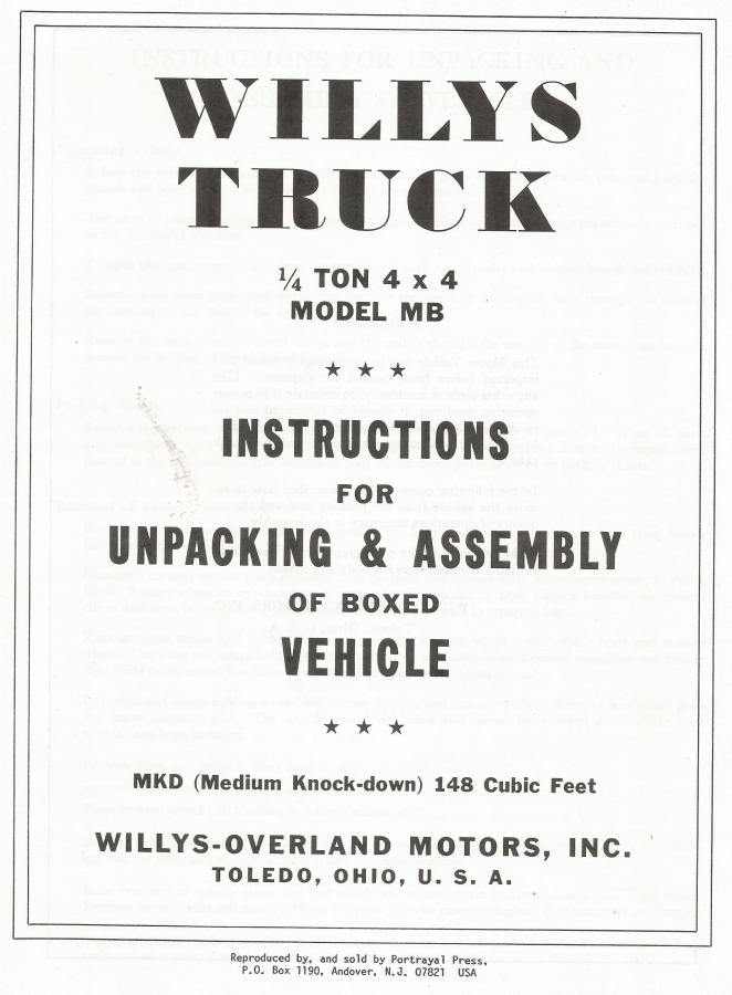 Instructions for unpacking & assembly of boxed vehicle Willys MB.
