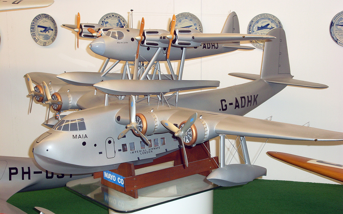 A realistic model of the huge Flying boat that forms the lower component of the famous Mayo Composite aircraft. It is similar in general arrangement and construction to the Empire Flying boats, but it has on its back a special superstructure to wich the upper component, the Seaplane Mercury, is locked when the composite aircraft takes of.