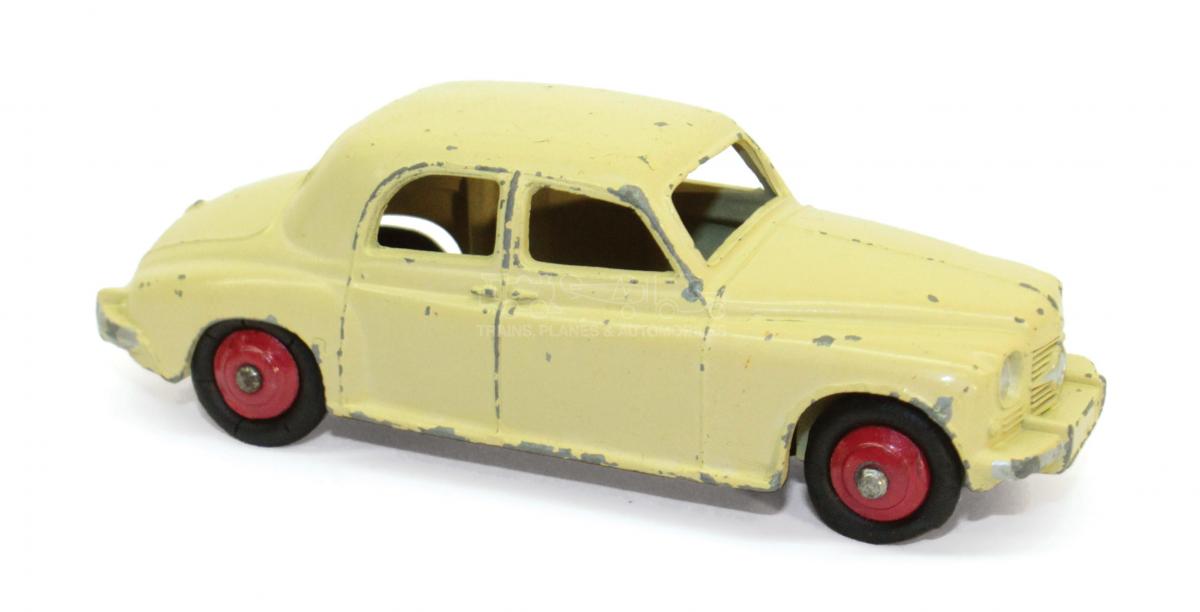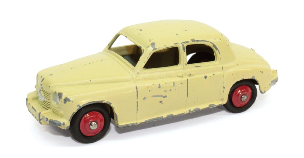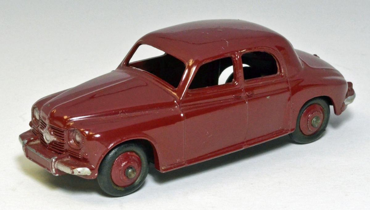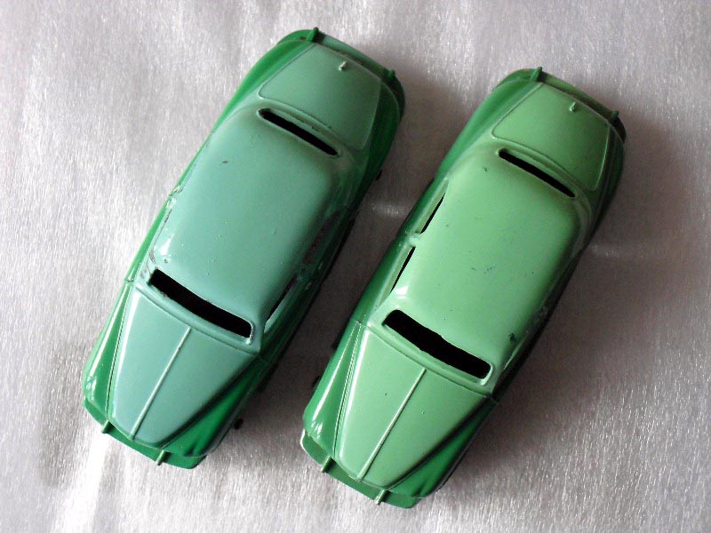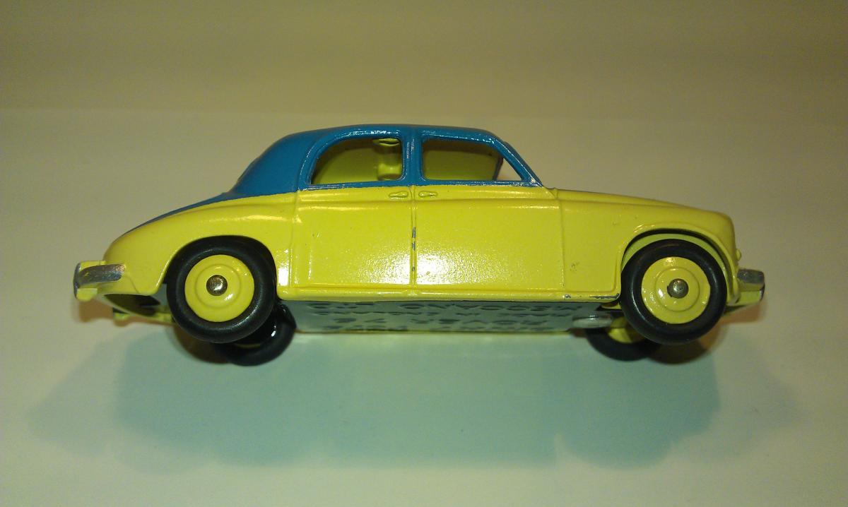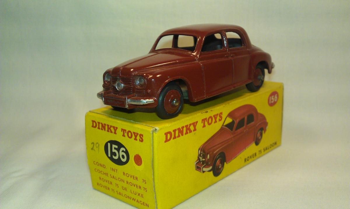 After a disappointing purchase I sold the 156 Rover 75 blue/cream with non-original rivets (of course with the correct description to the buyer). Instead I bought a better 156 2-tone green with number 156 in the base plate and Rover 75 cast-in underside of the roof. The box has the correct colour spot and a pencil price of 3 / - on it. This was the price from October 1955 to May 1958.